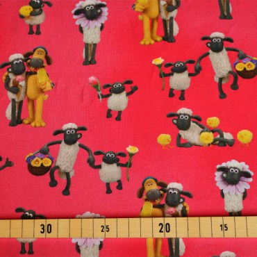 Jersey Stoffe Shaun das Schaf pink rot